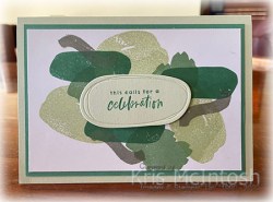 The images are stamped randomly and even on top of each other. I attached the stamped panel to Just Jade card and the scored and folded Soft Sea Foam card. I stamped the greeting from the Hello Beautiful stamp set onto Soft Sea Foam card using Just Jade ink. I cut out the greeting using one of the Beautiful Shapes Dies and attached it to the card front using dimensionals.