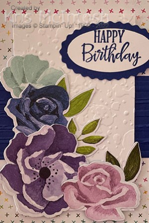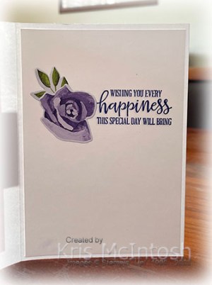 I stamped the greeting from the Peaceful Moments stamp set onto Basic White card using Starry Sky ink and punched it out using the Double Oval Punch. I attached the greeting to a Starry Sky scalloped oval and then the card front using dimensionals where necessary. To decorate the inside of the card, I stamped another greeting from the Peaceful Moments stamp set using Starry Sky ink. I attached another die cut flower and leaf beside the greeting. This card is so pretty and I love that the Designer Series Paper co-ordinates perfectly with the Blossoming Happiness Dies. I hope you have had a good look at the Hues of Happiness Product Suite because it is truly beautiful.