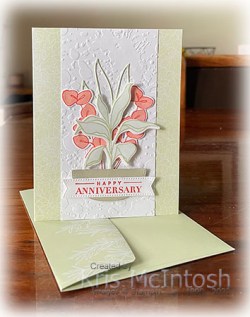 My parents celebrated their 66th Wedding Anniversary recently and I forgot to make them a card. So rather belatedly I used the Splendid Thoughts Bundle to put together this card. I embossed Basic White card using the splatter from the Stripes & Splatter 3D Embossing Folders. I attached the embossed panel to the front of one of the Pool Party & Soft Sea Foam Cards & Envelopes. These cards & envelopes can be earned for FREE during Sale-a-Bration with a qualifying order and are especially geared to work with the Splendid Thoughts Bundle. I cut Soft Sea Foam card using one of the leaf dies from the Splendid Stems Dies and attached it to the embossed card.