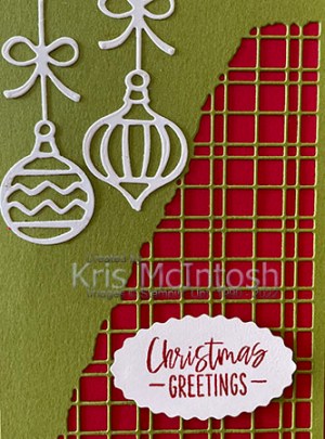Anyway I cut Old Olive card using the Split Card Texture Die and attached it to Real Red card and then scored and folded Thick Basic White card. I die cut Basic White card using the Decorative Pine Dies and attached the decorations to the Old Olive panel.