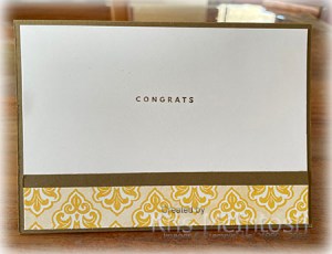 The whole panel is attached to the card front using dimensionals. To decorate the inside of the card, I stamped another greeting from the Celebrating You stamp set onto Basic White card using Soft Suede ink. I attached a narrow strip of the same pattern Design A Daydream Designer Series Paper and a very narrow strip of Soft Suede card across the bottom of the card.