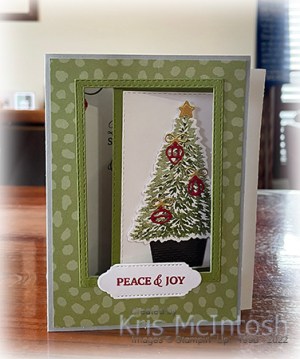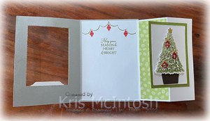 I love how this card turned out and although the Designer Series Paper is not technically a Christmas paper, I think it works well for Christmas, don’t you? If you would like to make one of these cards you might like to visit Brenda Quintana here to get a better idea of how the mechanism works.