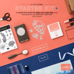 Joining Stampin’ Up! just got a whole lot better for the month of October. From now until the 31st October you can purchase $283.00 of any current Stampin’ Up! product for the crazy low price of $169.00. So if you have ever thought about becoming a Demonstrator and being part of the Stampin’ Up! family or maybe you just have a long wish list, this is the perfect time to join. You can be part of my team if you click on the join button here. Unfortunately you have to be living in Australia to join my team but if you have another favourite Demonstrator in your local area, then contact them to find out more about this amazing offer. Of course along with all your favourite stamps, inks, dies, papers you will be given all the things you need to become an active demonstrator if you wish to use them. Don’t forget once you join, all you orders going forward at subject to a 20% discount!