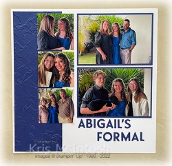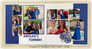Today I am sharing some photos that were taken before Abi headed off to her formal. I cut two pieces of Starry Sky card and embossed them using the Painted Texture 3D Embossing Folder. I attached one to the left hand side of a Basic White 12″ x 12″ page and one to the right hand side of another Basic White 12″ x 12″ page. I attached some of the photos to Starry Night card before attaching them to the page.