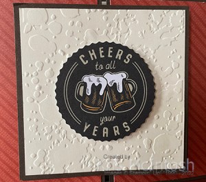 Today’s card features a fancy fold which I shared on my Facebook Live way back in early 2021. I cut the base card from Early Espresso and attached panels of the He’s The Man 12″ x 12″ Designer Series Paper to the front panels.