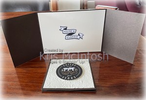 I attached one of the die cut greetings from the He’s The Man Designer Series Paper to Very Vanilla card before attaching the panel to the inside of the card.