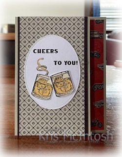 I stamped the “lime” image from the Whiskey Business stamp set onto the oval using Memento Tuxedo Black ink. I coloured the image using the Light So Saffron Stampin’ Blend. I stamped the glass image from the Whiskey Business stamp set twice onto Basic White card using Memento Tuxedo Black ink. I coloured the image using the So Saffron Stampin’ Blends. I cut out the glass images and attached them to the stamped oval. The oval is attached to the centre of the card front. I really love how this card turned. Thank you Lisa for your instructions. I must admit I will have to play with this one to convert the directions to fit our A4 card. I’d love to hear what you think.