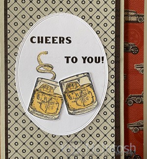 I cut Basic White card using one of the frames from the Framed Florets Dies. I stamped the greeting from the Whiskey Business stamp set onto the top of the Basic White oval using Early Espresso ink. I only inked the word “Cheers” the first time and then “to you” the second time so that I could space the words how I wanted.