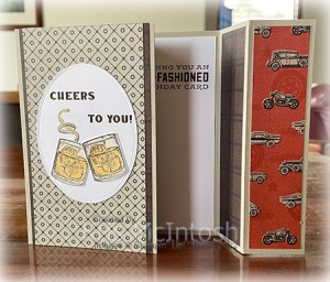 My son-in-law recently celebrated his birthday and today I am sharing his card with you. I followed a video by Lisa Curcio to create this fancy fold card. You can find her video here. I cut my card base pieces from Sahara Sand card and used the He’s The Man 12″ x 12″ Designer Series Paper to decorate the panels. I stamped a greeting from the Whiskey Business stamp set onto Basic White card using Early Espresso ink and attached the panel to the inside of the card.