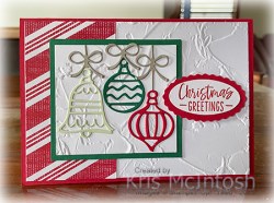 Today I decided to use up some product left over from making the Framed Art Decoration from my all day class at Beachmere. I embossed Basic White card using the Tasteful Textile 3D Embossing Folder before attaching a piece of Sweetest Christmas 12″ x 12″ Designer Series Paper to the left hand side