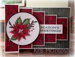 I cut Basic White card using the largest circle from the Layering Circle Dies and attached them to an Evening Evergreen scalloped circle cut using the same dies. I attached the circles to the first panel on the card. I cut out one of the flowers from the Boughs of Holly Designer Series Paper and attached it to the centre of the Basic White circle.