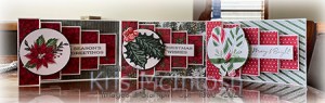 First of all let me wish everyone a very Merry Christmas. I hope that today you are spending time with those that you love. Today’s post is going to be a long post because I want to share with you the cards I created for my grandchildren, two each of three different designs. I found a fancy fold card on Pinterest with some directions from Frenchie.Stamps. What fun cards. I followed her instructions to create all the pieces for the bases from Basic White card. For the first card, I attached a piece of Boughs of Holly 12″ x 12″ Designer Series Paper behind the pop up cubes. Once the cubes were in place, I cut up another design from the Boughs of Holly Designer Series Paper to cover the tops of the cubes.