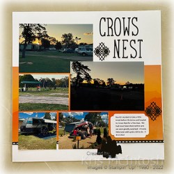 Before Christmas Ron and I decided to take a short break and visited a little town about two hours from home. We had a lovely time. For my page I attached a piece of the Enjoy The Journey 12″ x 12″ Designer Series Paper across the bottom half of a Basic White 12″ x 12″ page. I did cut a border from Basic Black card using one of the Blossoming Happiness Dies which I attached to the bottom edge of the paper first. I attached my photos onto the page without adding any mats. I cut two of the decorative panels from Basic Black card using the All That Dies to attach to the page. I cut the title from Basic Black card using the new Alphabet A La Mode Dies which you can find in the new Mini Catalogue.