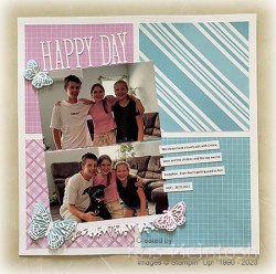 Today’s page shows off a couple of photos of my youngest daughter’s children. We had been down to visit and check out the work on their backyard extensions. I attached pieces of the Dandy Designs 12″ x 12″ Designer Series Paper to a Basic White 12″ x 12″ page. (This paper is available during Sale-a-Bration for FREE with a qualifying order.) I cut Basic White card using the edge die from the Eden Dies and attached it across the bottom of one of the photos. The photos are attached to the page without adding additional mats. I cut the title from Basic White card using the Alphabet A La Mode Dies and attached it above the photos.