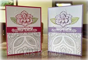 I loved the finished result and decided to create another card using Highland Heather and Pear Pizzazz ink and Highland Heather card. I think they both look lovely, don’t you?