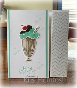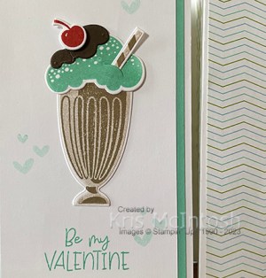 The glass, ice cream, straw and cherry images were cut out using the co-ordinating Share a Milkshake Die. I also cut Early Espresso card using the die from the Share A Milkshake dies to create the chocolate image. I stamped the heart image from the Share a Milkshake stamp set three times onto Basic White card using Coastal Cabana ink which I stamped onto scrap paper first. I stamped the greeting from the Share a Milkshake stamp set onto the bottom of the Basic White card using Coastal Cabana ink. The ice cream image after it is die cut has a small opening which allowed me to slide in the straw. I attached the ice cream image the top of the glass before attaching it to the stamped Basic White panel. I added the chocolate die cut and then the cherry using a mini dimensional. This is such a fun card to create and I think it turned out great using the Share a Milkshake Bundle don’t you?