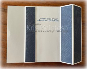 My son-in-law celebrated his birthday recently and I thought that I would share the card I made for him. I wanted it to be special so I created a Vertical Panel Fancy Fold. I cut the card base from Basic White card and attached a strip of Bermuda Bay card which I embossed using the Painted Texture 3D Embossing Folder to each side. I cut the folding panel from Basic White card and added pieces of By The Bay 6″ x 6″ Designer Series Paper to some of the panels. I also stamped a greeting from the On The Ocean stamp set onto the inside of the folding panel using Night of Navy ink.