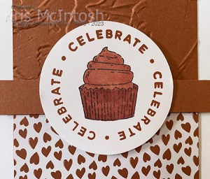 I stamped the greeting from the Circle Sayings stamp set onto Basic White card using Copper Clay ink. I stamped the cupcake image inside the greeting using Memento Tuxedo Black ink. The cupcake image is coloured using both the light and dark Copper Clay Stampin’ Blends before punching out using the 2-3/8″ Circle Punch. The image panel is attached to the card front using dimensionals where necessary.To decorate the inside of the card, I stamped “happy birthday” from the Circle Sayings stamp set onto Basic White card using Copper Clay ink. I attached a narrow strip of In-Colour Designer Series Paper across the bottom of the stamped Basic White card. I love how this card shows off each of the new In-Colours, don’t you. So each card uses a different embossing folder and of course uses one of the other new in-colours. In this photo you can see Copper Clay, Wild Wheat, Boho Blue, Moody Mauve and Pebbled Path. Each card uses co-ordinating colours in ink, card and designer series paper.