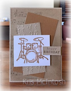 I stamped the drum kit image from the Enjoy The Rhythm stamp set onto Basic White card using Pecan Pie ink. I attached the image to the card front using dimensionals in the corners only.