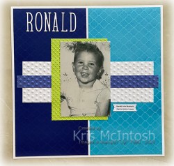 I attached the card panels to a Basic White 12″ x 12″ page. I cut a thin strip of Orchid Oasis card and attached it across a Basic White panel. I embossed this panel using the dot folder from the Basics 3D Embossing Folders. The embossed panel is attached across the centre of the page. I attached my photo to a piece of Parakeet Party card which I embossed using the Metal Plate 3D Embossing Folder. This panel is attached to the centre of the page. I cut the title from Basic White card using the Alphabet A La Mode Dies. I attached a banner to the right hand side of the photo with the approximate age. I love how bright and cheery this page, matches my husband’s cheeky smile.