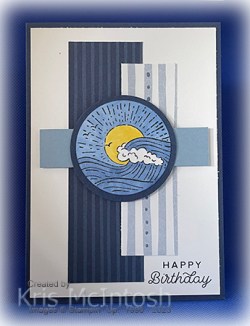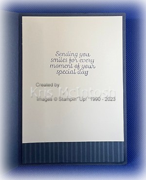 My Dad recently celebrated his 93rd birthday and I today I am sharing the card I made for him. I attached two pieces of Countryside Inn 12″ x 12″ Designer Series Paper to Basic White card. I stamped the greeting from the Circle Sayings stamp set onto the bottom right hand corner of the Basic White card using Night of Navy ink. I attached a piece of Boho Blue card across the panel using dimensionals.