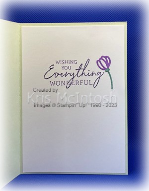 I used the Enduring Beauty Decorative Masks to add Highland Heather, Gorgeous Grape, Soft Sea Foam, Lost Lagoon and Early Espresso ink to the image. I used the co-ordinating Enduring Beauty Die to cut out the image which I attached to the card front. To decorate the inside of the card I stamped a greeting from the Charming Sentiments stamp set onto Basic White card using Gorgeous Grape ink. I die cut Basic White card using the flower die from the Enduring Beauty Dies and coloured it using the Dark Highland Heather and Dark Lost Lagoon Stampin’ Blends. I attached the flower next to the greeting before attaching the panel to the inside of the card base. This bundle is truly amazing and I am sure will be a very popular purchase from the new Mini Catalogue. I would love to hear what you think.