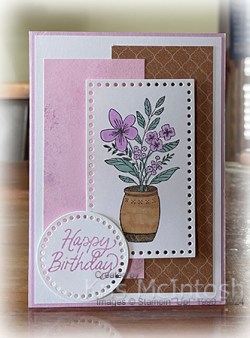 This week in my Facebook Live I shared some cards I made using the Everyday Details Bundle. Today I have another card to share with you. I attached two pieces of the Flight & Airy 12″ x 12″ Designer Series Paper to Basic White card (you can earn this Designer Series Paper for free until the end of February with a $90.00 order). The whole panel is attached to scored and folded Fresh Freesia card. I stamped the image from the Everyday Details stamp set onto Basic White card using Memento Tuxedo Black ink. I cut out the image using one of the rectangle dies from the Everyday Details Dies.