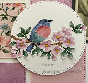 I cut the title from Basic Gray card using the Mini Alphabet Dies and attached it across the top of the photo. I cut a circle from Basic White card using one of the circles from the Stylish Shapes Dies. I cut the floral bird image from the Flight & Airy Designer Series Paper and attached it to the circle. The whole panel is attached to the page using dimensionals. I used a Basic Gray Stampin’ Write Marker to add the date below the photo. Another simple page but one that I am sure my family will love to see.