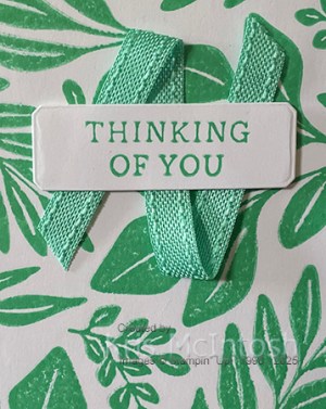 I stamped the greeting from the Simply Said stamp set onto Basic White card using Summer Splash ink. The greeting is cut out using one of the Countryside Corners Dies.I attached a length of Summer Splash 3/8″ (1cm) Bordered Ribbon to the back of the