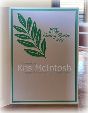 greeting before attaching it to the card front using dimensionals. To decorate the inside of the card I stamped a greeting from the So Sincere stamp set onto Basic White card using Summer Splash ink. I stamped the Leaf Collection stamp onto scrap Basic White card and cut out one of the leaves which I attached next to the greeting. The stamped panel is attached to Summer Splash card and then the inside of the Thick Basic White card base. I would love to know what you think of this card.