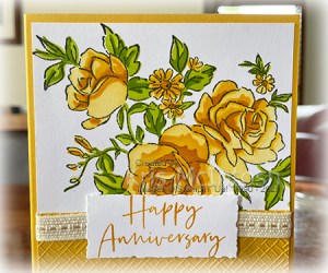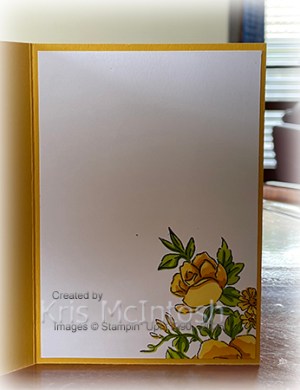 The greeting is attached to the card front using dimensionals. To decorate the inside of the card, I stamped part of the large floral image from the Layers of Beauty stamp set onto the lower right hand corner of Basic White card using Memento Tuxedo Black ink. I used the Layers of Beauty Decorative Masks to add Daffodil Delight, Crushed Curry, Lemon Lime Twist and Granny Apple Green to the image. I love this card so much, I created another one, this time I did not stamp the large floral image, I just used the masks to create the beautiful floral bouquet using the same inks as the first card. I added embossed Lemon Lime Twist card and used Lemon Lime Twist ink to stamp the image. Otherwise everything is created as before. Which one is your favourite?