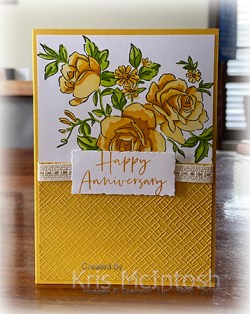 The greeting is attached to the card front using dimensionals. To decorate the inside of the card, I stamped part of the large floral image from the Layers of Beauty stamp set onto the lower right hand corner of Basic White card using Memento Tuxedo Black ink. I used the Layers of Beauty Decorative Masks to add Daffodil Delight, Crushed Curry, Lemon Lime Twist and Granny Apple Green to the image. I love this card so much, I created another one, this time I did not stamp the large floral image, I just used the masks to create the beautiful floral bouquet using the same inks as the first card. I added embossed Lemon Lime Twist card and used Lemon Lime Twist ink to stamp the image. Otherwise everything is created as before. Which one is your favourite?