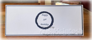 To decorate the inside of the card, I attached a piece of Basic White card to Night of Navy card. I printed “happy 18th birthday” onto Basic White card and cut it out using one of the Deckled Circle Dies. I attached the greeting to a Night of Navy Deckled Circle before attaching the whole panel onto the Basic White card. It’s kind of simple but you know what guys are like, they are not into the intricate like we ladies are! Luckily my grandson loved his card.