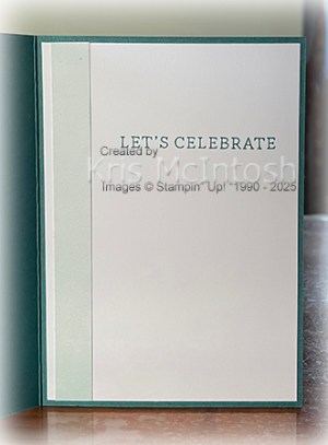 The greeting is attached to the card front using dimensionals where necessary. To decorate the inside of the card, I attached a narrow strip of Delightful Floral 12″ x 12″ Designer Series Paper down the left hand side of Basic White card. I also stamped “let’s celebrate” from the Simply Said stamp set onto the Basic White panel using Pretty Peacock ink. I am so impressed with this gorgeous bundle. I can see lots of different occasion cards being created with this gorgeous bundle.