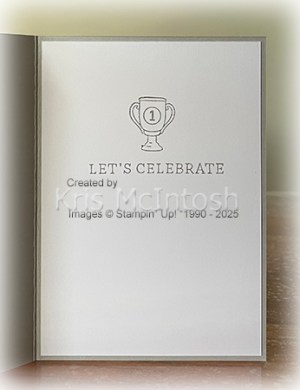 I stamped the greeting from the Racing By stamp set below the card image using Basic Gray ink. I attached the stamped panel to Smoky Slate card and then the card front using dimensionals. To decorate the inside of the card, I stamped the cup image from the Racing By stamp set onto Basic White card using Basic Gray ink. I stamped “let’s celebrate” from the Simply Said stamp set below the cup using Basic Gray ink. I had so much fun creating these cards. I’d love to know what you think.