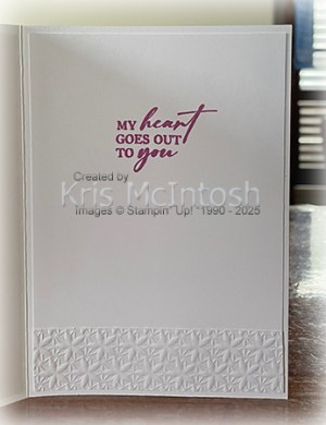 I cut out the greeting using one of the Unbounded Love Dies – I did cut it twice to make the die slightly smaller. The greeting is attached across the bottom of the stamped panel using dimensionals where necessary. To decorate the inside of he card I stamped a greeting from the Unbounded Love stamp set onto Basic White card using Petunia Pop ink. I embossed a narrow strip of Basic White card using the same Basics 3D Embossing Folder. The embossed panel is attached across the bottom of the stamped card. I simply love how gorgeous this card is. Sympathy cards are usually hard to make when you need them so it’s nice to have them on hand. I would really love to know what you think of this card. Are you in love with this beautiful Unbounded Beauty Collection as much as I am?