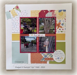 I didn’t use exactly the same stickers and die cuts on my layout and I did move the banners from the right hand side to the left hand side of the second page. I think it looks nice having the banners meet in the middle. I am so happy with the finished layout and I look forward to sharing the other two layouts with you in the future. If you love scrapbooking and are looking for some inspiration, I can’t recommend these kits highly enough. Please let me know what you think.