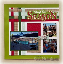 Today I have a double page layout to share with you that I created using the Reindeer Memories Scrapbook Workshop Kit. This particular kit also co-ordinates with the Reindeer Days Suite Collection in the current mini catalogue. I don’t have any of the products from the Suite Collection and I was able to create my pages without them. However, if you have this kit you could probably create more pages and add different embellishments if you wished.