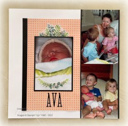 Whilst I was cruising on Pinterest I found this amazing layout created using one piece of 12″ x 12″ Designer Series Paper complete with cutting guide shared on the Creative Memories Blog . I decided to use the last full sheet of Frames & Flowers 12″ x 12″ Designer Series Paper that I had to create my page. I did add some strips of Basic Black in place of the Designer Series Paper but I love how easy it was to cut the Designer Series Paper with no waste.