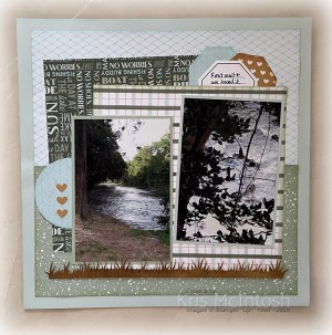 This is the third page I created using the Lake Life Scrapbooking Workshop Kit which is on sale while stocks last. This one fitted some photos from the very first long road trip Ron and I did in our van. We had such a lovely time while staying at the caravan park near Lake Placid. The location is close to the Kuranda Rail & Sky Rail and the Barron Falls and so peacful.