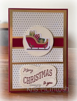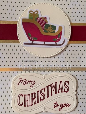 I attached one of the images from the Joyful Images Mix & Match Ephemera Pack to the circle. I stamped the greeting from the Christmas Labels stamp set onto Very Vanilla card using Cherry Cobbler ink.