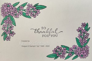 The image is again coloured using the Dark Fresh Freesia and Dark Summer Splash Stampin’ Blends. This stamp set has so many possibilities and so many different floral images to create beautiful cards and I am sure it will also be a great addition to my memory keeping. Don’t forget Sale-A-Bration ends on the 28th February 2025 and is a fabulous time to stock up on some of the items on your wish list and earn something for free.