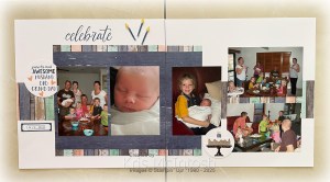 I cut out the cake image using the second largest circle from the Stylish Shapes Dies before attaching it to the right hand page. Another page I am happy to complete. Slowly working my way through “mountains” of photos and memories.