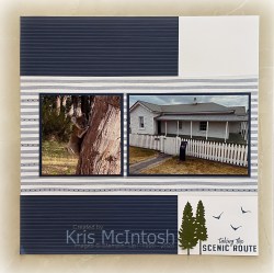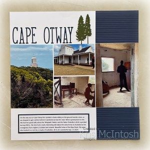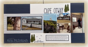 Today’s page shows off a couple of photos from our visit to Cape Otway on the Great Ocean Road. I really loved this place. I used a layout I created using the template from the 1, 2, 3 Layout Class. I attached the pieces of retired Countryside Inn 12″ x 12″ Designer Series Paper to White Willow 12″ x 12″ card. I attached the photos on the left hand page to Night of Navy card before attaching them to the page.
