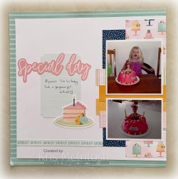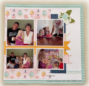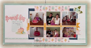 Today I am sharing Layout 1 from the Wildflower Birthday Scrapbooking Workshop Kit. Once again I have had the Designer Series Paper cut and layered onto the pages just waiting for the right photos. I decided to attach some photos from Elyssa’s third birthday. To fit the photos I wanted onto the page, I added an extra photo to the second page.