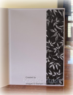 Today I am going to share with you two cards I created after receiving some instructions I purchased from Janice Gilhooley. I found a beautiful scrapbook layout on You Tube created by Janice and decided that I would have to purchase the instructions and they came with some bonus cards. For my card I created a card base from Thick Basic White card and trimmed down the front panel. I attached a piece of Botanical Textures 12″ x 12″ Designer Series Paper to the right hand side of Basic White card. This panel is attached to the inside of the card base.