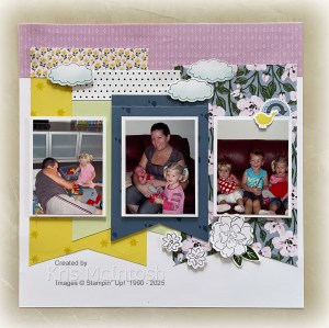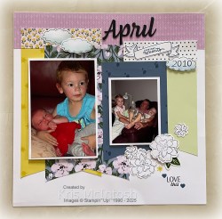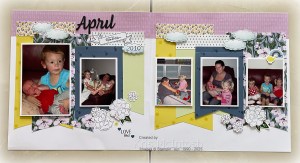 Today I have another page to share which I created using the Virtual Album Retreat kits. For this page I used the month of April and added the title to showcase some random photos shared with my grandchildren over the month. I didn’t change anything on this page except for the “everyday moments” sentiment which comes from the long retired Moments Like These Project Life stamp set.