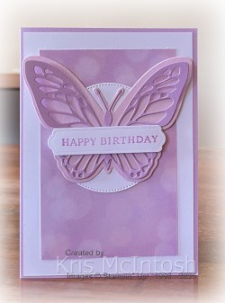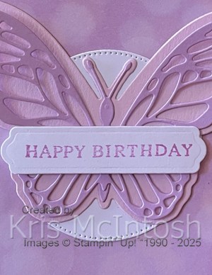 I also die cut the butterfly body from Fresh Freesia card using the same dies. I attached the butterfly body to the solid butterfly and attached the intricate butterfly over the top. I only added glue behind the body sections of the butterfly pieces so that the wings were loose.