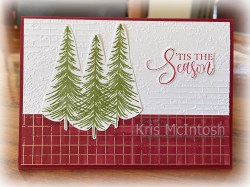 Today I have another card to share with you using the Ornamental Christmas Bundle which is an Online Exclusive. I embossed Basic White card using the Exposed Brick 3D Embossing Folder and attached a piece of Regal Distressed 12″ x 12″ Designer Series Paper across the bottom. The whole panel is attached to scored and folded Cherry Cobbler card.