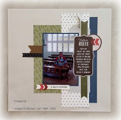 I printed my journaling onto Basic White card and cut it out using the retired Deckled Circle Dies instead of using the die cut from the kit where you had to write your journaling. I also used the retired Remember This stamp set to add the wording underneath the photo on the left page using Early Espresso ink.